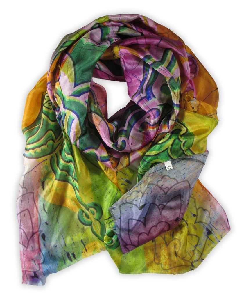 100cm x200cm modern shawl, inspired by traditional Turkish patterns, voile silk, tassel detail at tips.