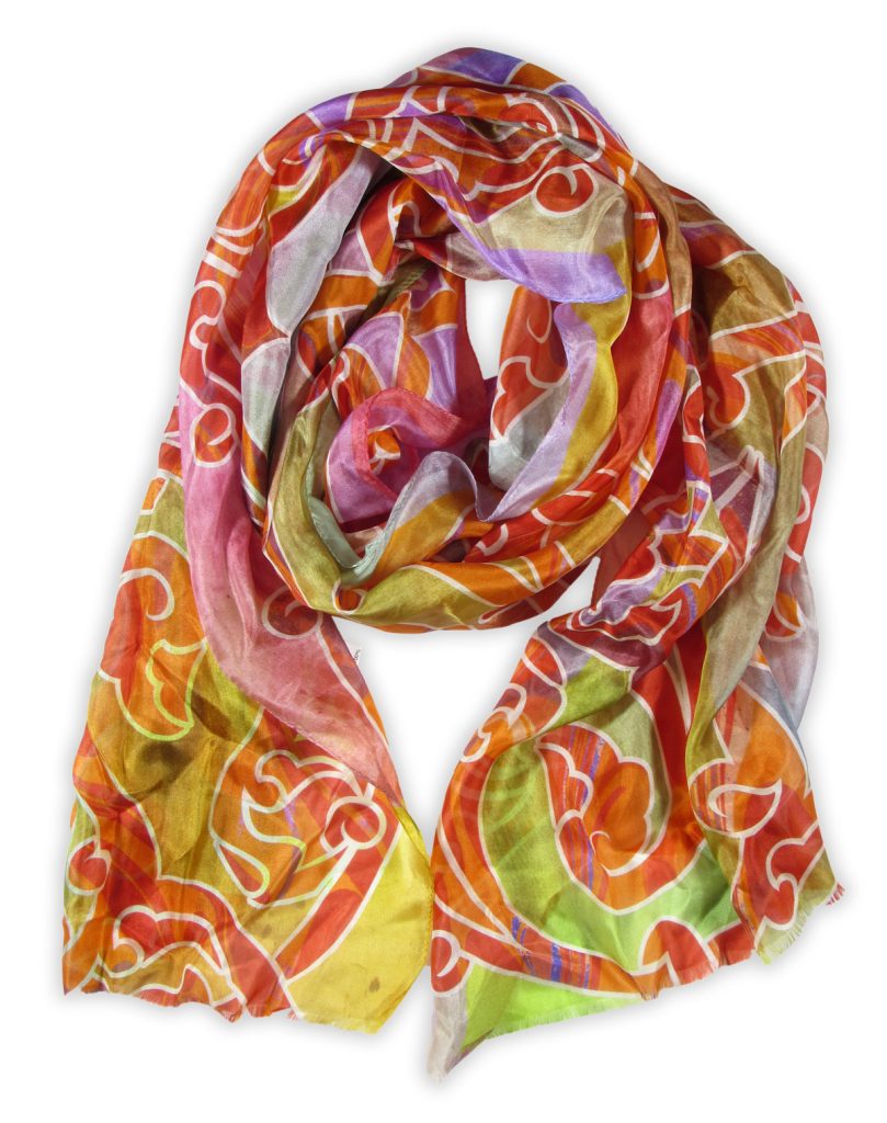 100cm x200cm modern shawl, inspired by traditional Turkish tile patterns, voile silk, tassel detail at tips.